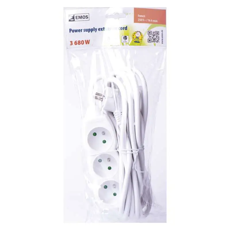 EMOS prodlužovák 6-zásuvkový 3m bez vypínače P0613C 250V/10A H05VV-F3Gx1mm