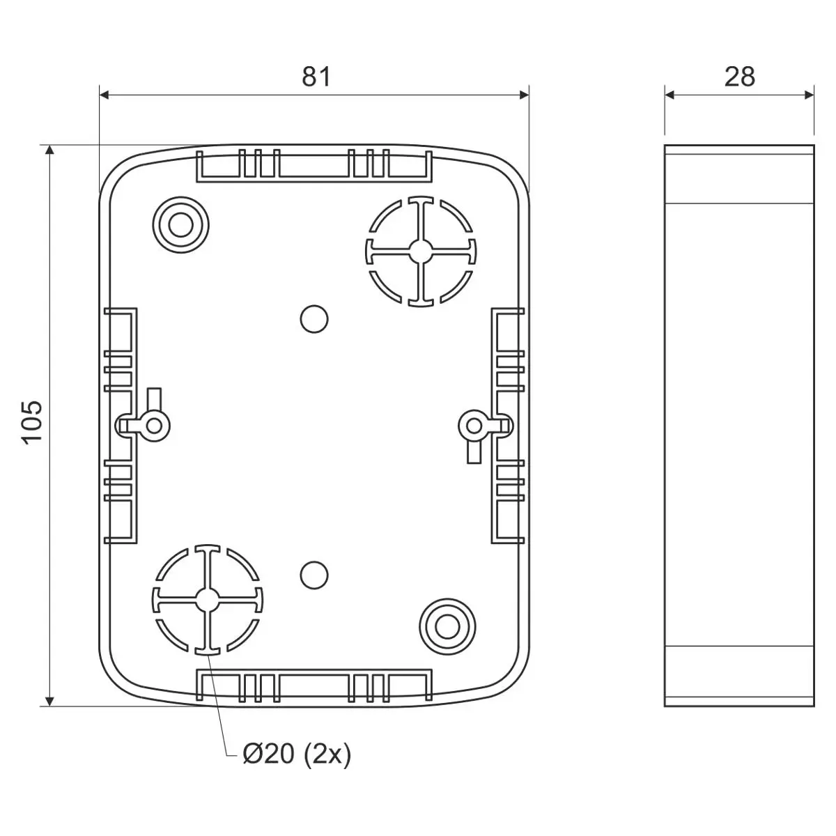 KOPOS lištová krabice (Classic) 2-nás LK 80x28 2ZK 104x80x28mm oble rohy