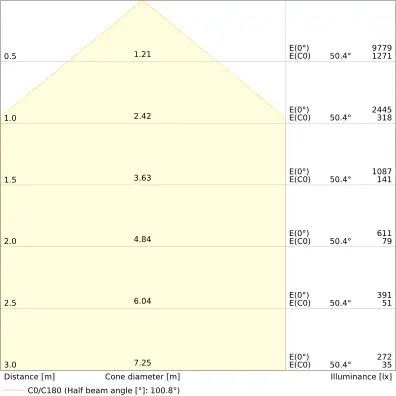 | Úhel vyzařování | 100 st. |