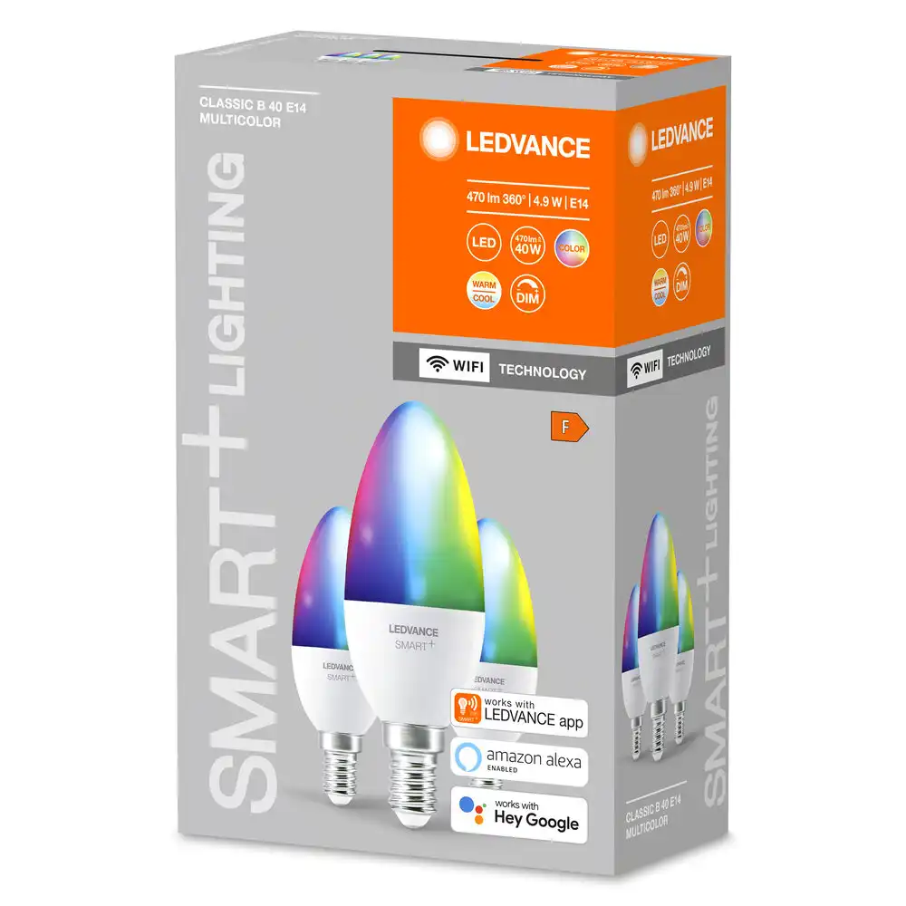 LEDVANCE SMART+ svíčka B38 4.9W/40W E14 RGBW 470lm Dim 20Y WIFI 3-pack˙