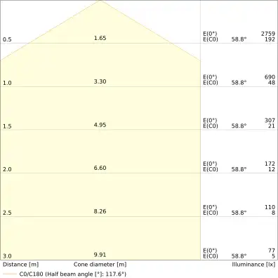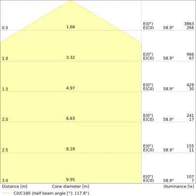 | Úhel vyzařování | 120 st. |