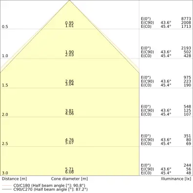 | Úhel vyzařování | 90+130 st. |