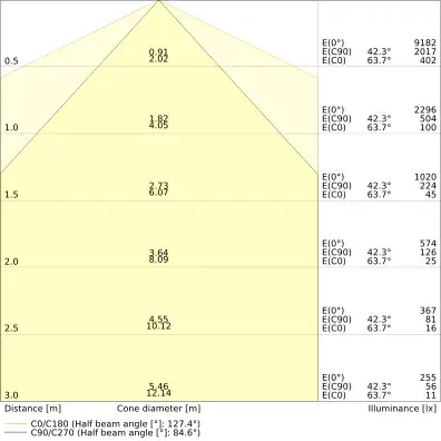 | Úhel vyzařování | 90 st. |