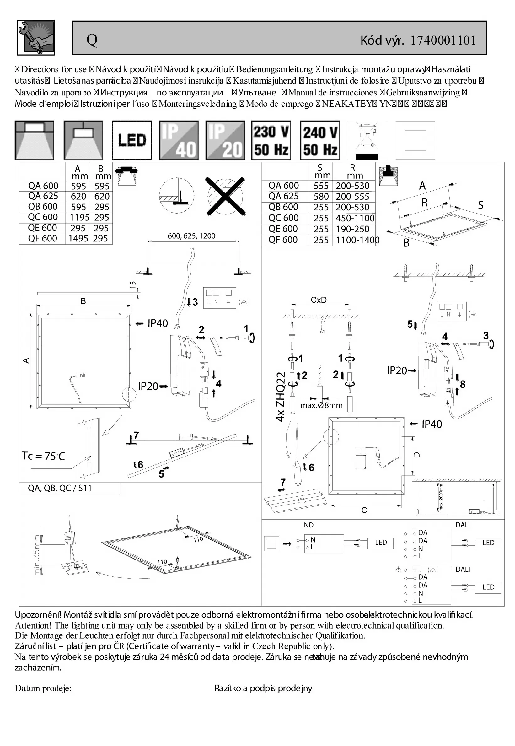 | Krytí | IP40 |