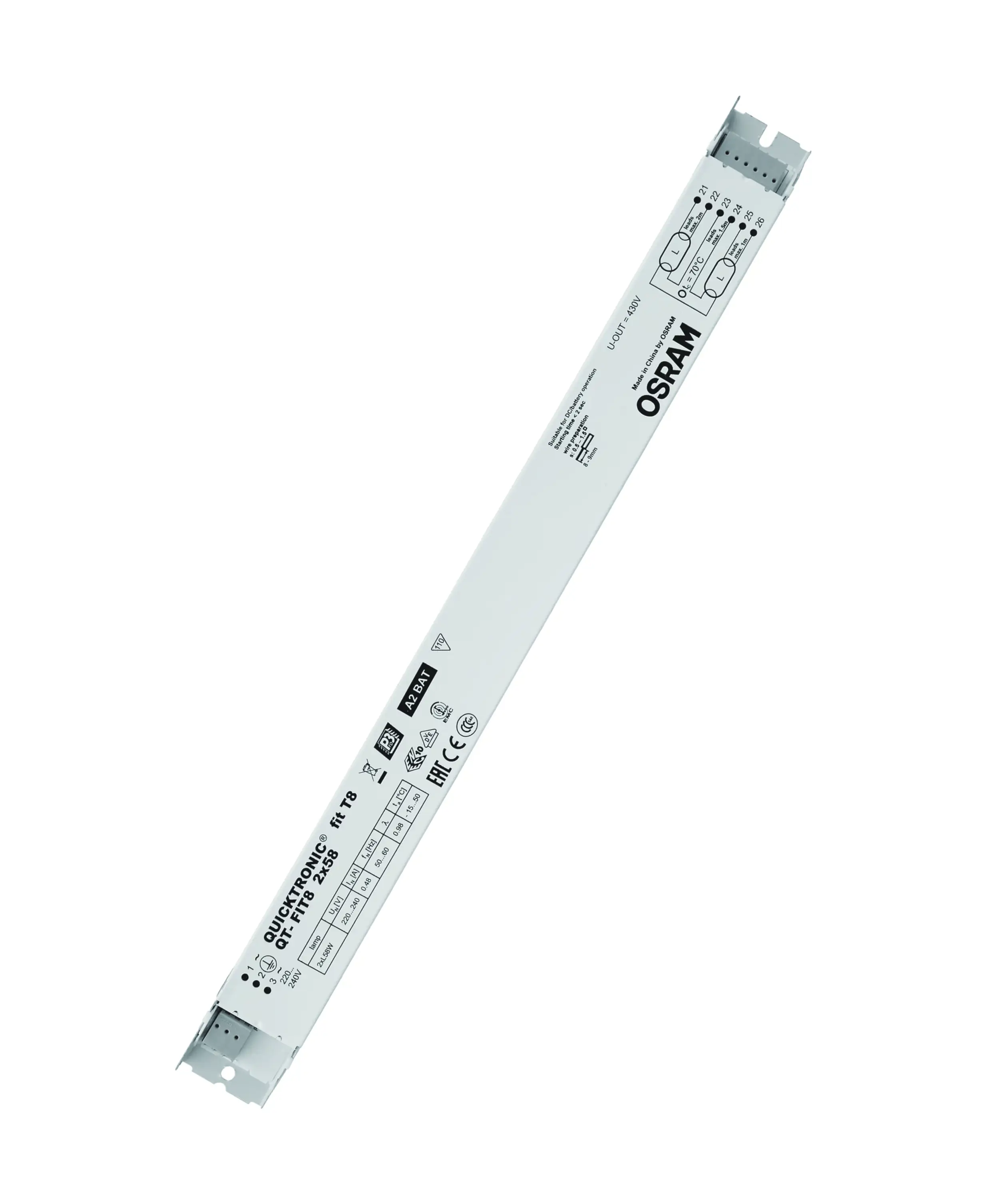 Výhody produktu: Dlouhá životnost světelného zdroje. Žádné nepříznivé dopady při častém zapínání a vypínání. Automatický restart po výměně světelného zdroje. Perfektní zapínání světelného zdroje pro instalace s pohybovými čidly. Systém certifikovaný podle VDE/VDE pro EMC. Velmi vysoká energetická účinnost díky odpojovací technologii. Vlastnosti produktu: Napájecí napětí: 220…240 V. Síťové napětí: 198 – 264 V. Kmitočet: 50 Hz | 60 Hz. Zapnutí světelného zdroje s optimálním předehříváním vlákna. Index energetické účinnosti EEI: A2. Automatické vypnutí vadných světelných zdrojů a zdrojů na konci života (EoL T.2). Provoz světelného zdroje: po EN 60929. Bezpečnost: podle EN 61347-2-3. Druh použití: Společné kanceláře, chodby a skladovací prostory. Veřejné budovy. Světelné pásy. Vhodné pro nouzové osvětlení (provoz na stejnosměrný proud). Vhodné pro svítidla třídy ochrany I.