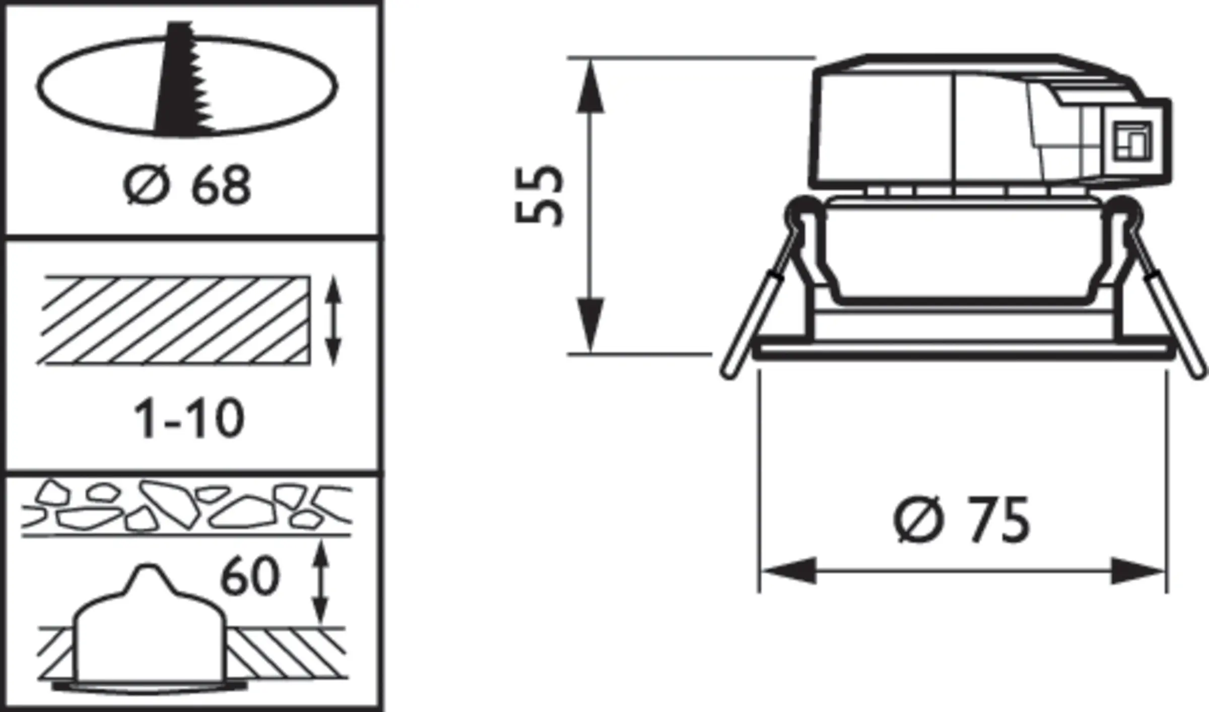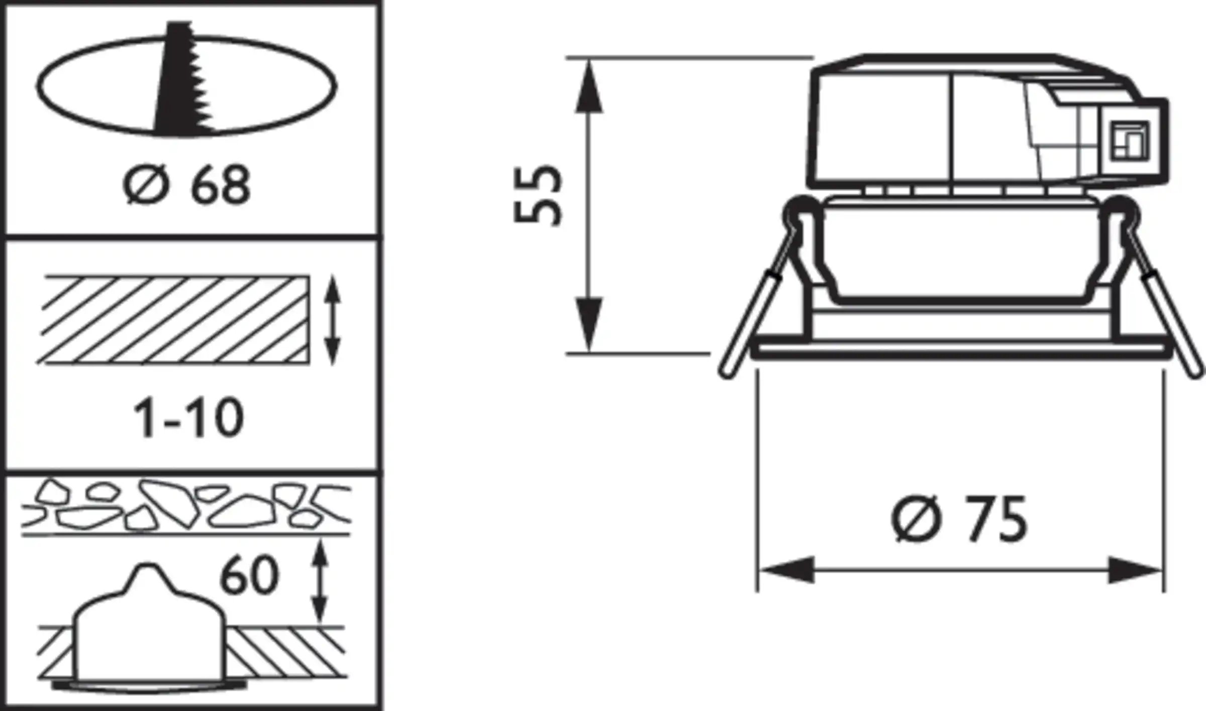 | Výřez | 68 mm |