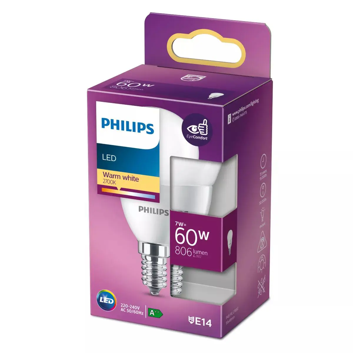 PHILIPS LED kapka P48 7W/60W E14 2700K 806lm NonDim 15Y opál