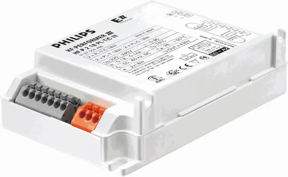 HP-Performer III PL-T/C je tenký vysokofrekvenční elektronický předřadník pro zářivky PL-T a PL-C zohledňující trvalou udržitelnost. Je ideální pro použití vyžadující vysokou energetickou účinnost. Série HF-Performer III se vyznačuje robustním designem, vyhovuje všem relevantním mezinárodním standardům v oblasti bezpečnosti a výkonu a je energeticky účinný (CELMA EEI A2).